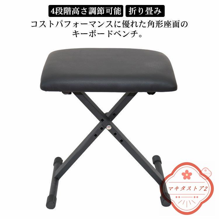 キーボードチェア 折りたたみ 高さ調節 4段階 キーボード ピアノ 椅子 クッション キーボードベンチ キーボードイス チェア 背もたれなし スリム