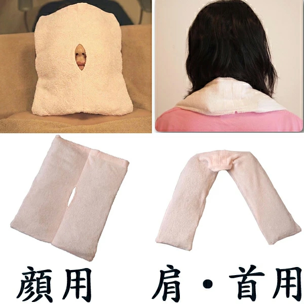 | 顔用は鼻の部分に呼吸が苦しくないように約5.5cmのスリットが入っています。重さ約530gで少々ズッシリきますが嫌な圧迫感ではありません。あとで、お気に入りの美容液をたっぷりと補充しましょう。 肩・首用は肩から掛けたまま動いても落ちにくいです。前から掛けたり目と首に当てたり自由自在。顔用と共にお好きな部位をどこでも温められます。 気温にもよりますが温かい状態は約15分程度楽しめます。服の中に入れたり体温によって長時間温かく感じることもできます。皇輝石は常温で遠赤外線(育成光線)を高放射するので温度が下がっても体に密着させておくことをオススメします。 パソコンやスマホで疲れた目も温めると、とっても気持ちが良いです。店長は休憩時間に使っておりますが一瞬で寝てしまいます(笑)疲れたあなたを癒したい♪オススメです。是非使ってみてください! |
