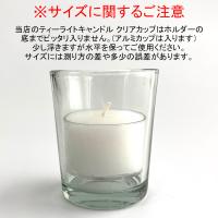 | ※サイズに関する注意:当店のティーライトキャンドル クリアカップはホルダーの底までピッタリ入りません。(アルミカップは入ります) 少し浮きますが水平を保ってご使用ください。 サイズには測り方の差や多少の誤差があります。 | ![]() |
