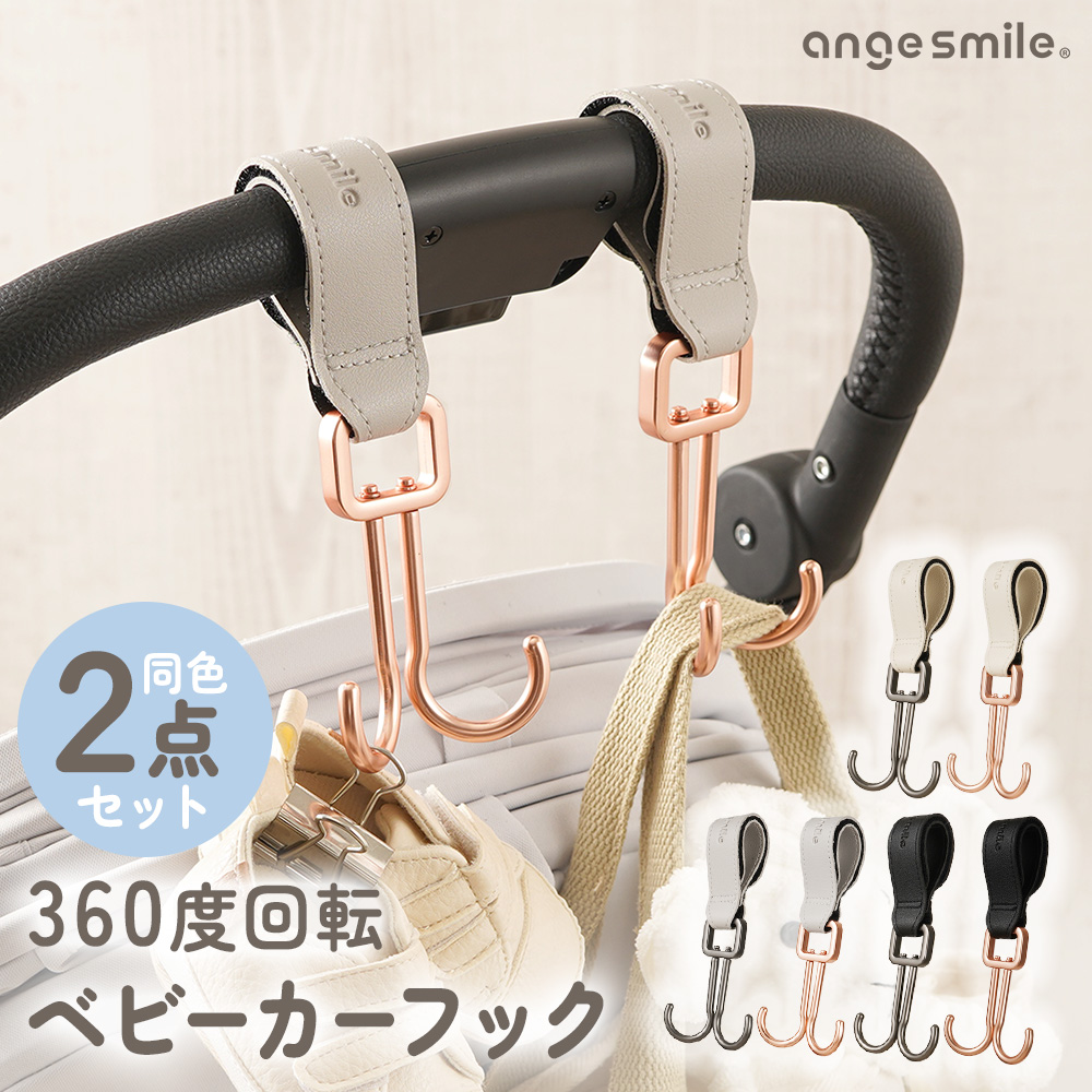 | 商品の特徴 | ・ベビーカーなどに取り付けられる360度回転するダブルフック ・開口幅が広く、荷物を掛けやすい ・耐久性のある亜鉛合金の丈夫なフック ・マットな質感のレザーベルトにはブランド刻印入り ・強力面テープでしっかりと固定 ・使いやすい2点セット |