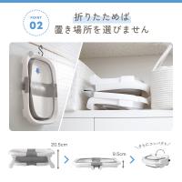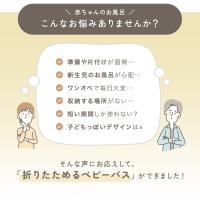 | 商品の特徴 | ・折り畳んで収納できるベビーバス ・専用バスネット付きで新生児からも沐浴OK ・衣類や靴の漬け置きや、ペットのお風呂にもぴったり |