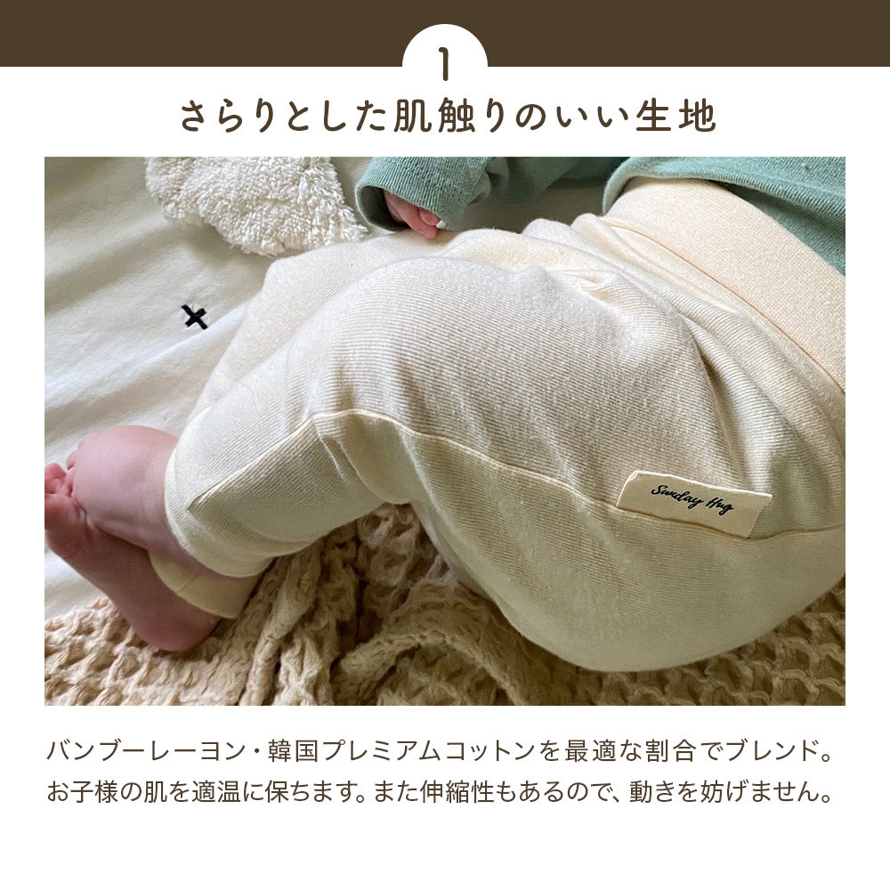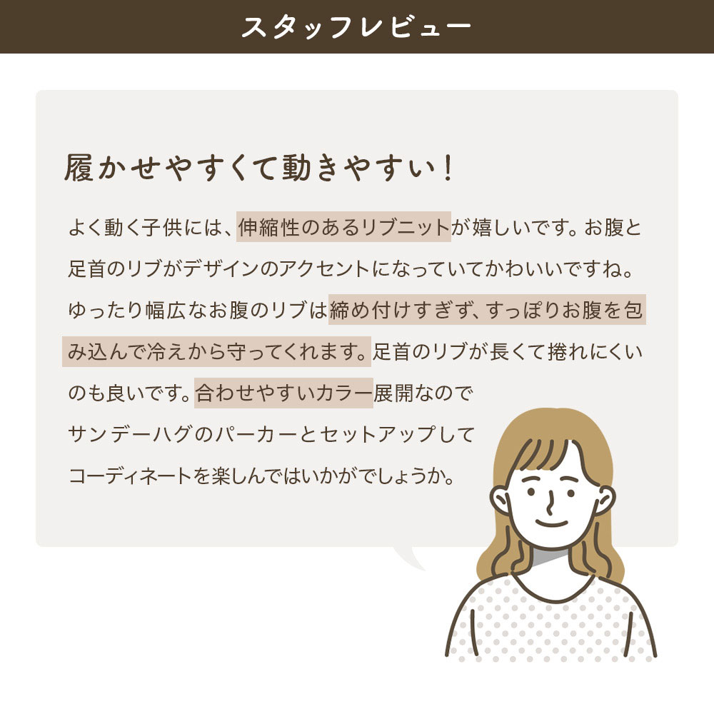 | サイズ | 【Sサイズ 50〜60cm相当】月齢目安:0〜6ヶ月 総丈:34cm /ウエスト:18cm(リブ) 【Mサイズ 70〜80cm相当】月齢目安:6〜12ヶ月 総丈:358m /ウエスト:19cm(リブ) ・寸法は測定位置に応じて片側を基準にしています。 ・1〜1.5cmの誤差が生じる場合がございます。 ・サイズ表は片面の採寸です(ウエストを除く)。 |