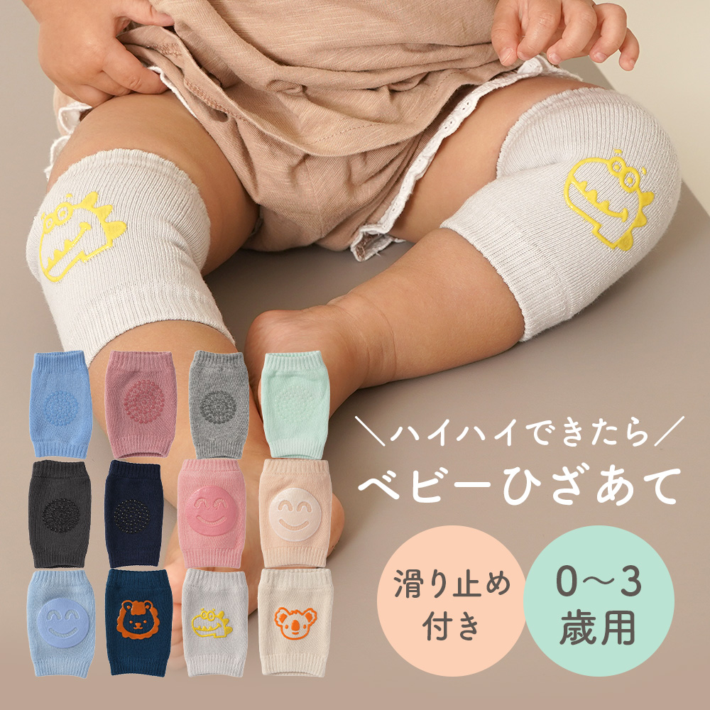 | 商品の特徴 | ・赤ちゃんのひざを優しく守るひざあて。 ・シリコン製の滑り止め付きで、フローリングでもハイハイしやすい。 ・伸縮素材で0〜3歳頃まで使える。 ・バラエティ豊かな選べるデザイン。 ・一部カラーは、裏側メッシュ構造で通気性抜群。 |