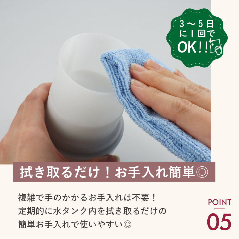 ・定期的に水タンク内を清掃するだけで簡単にお手入れが完了します。