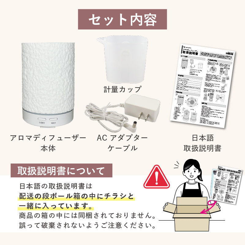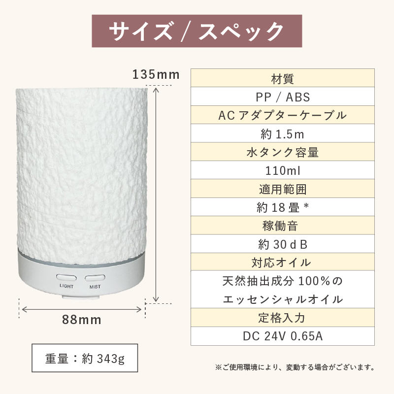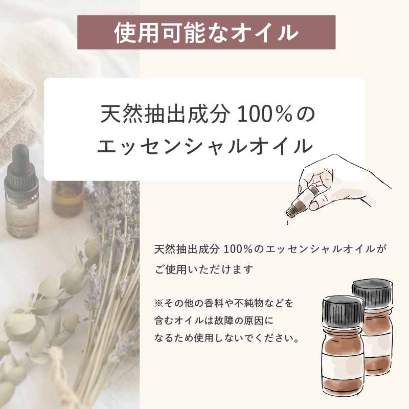 ※その他の香料や不純物などを含むオイルは故障の原因になるため使用しないでください。