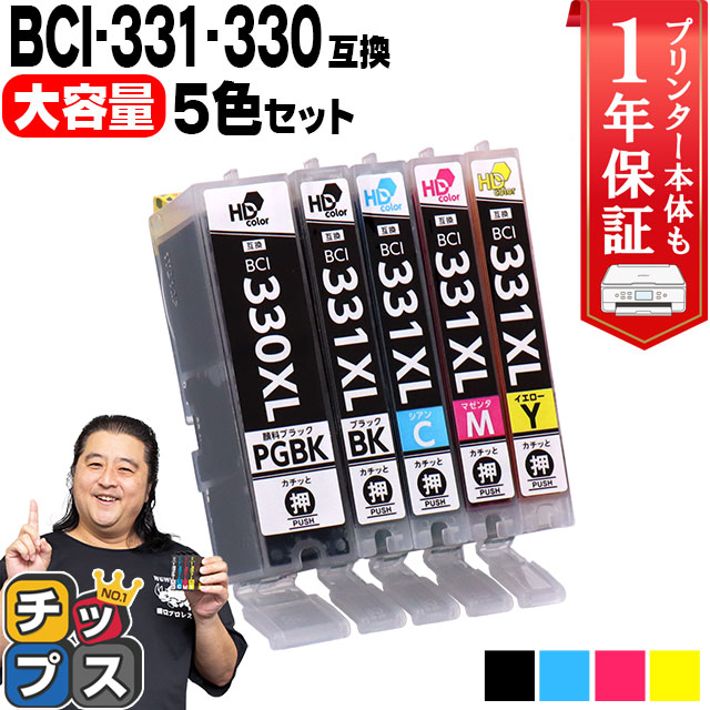 | 純正品番 | BCI-330XLPGBK ( 5113C001 ) BCI-331XLBK ( 5114C001 ) BCI-331XLC ( 5115C001 ) BCI-331XLM ( 5116C001 ) BCI-331XLY ( 5117C001 ) |