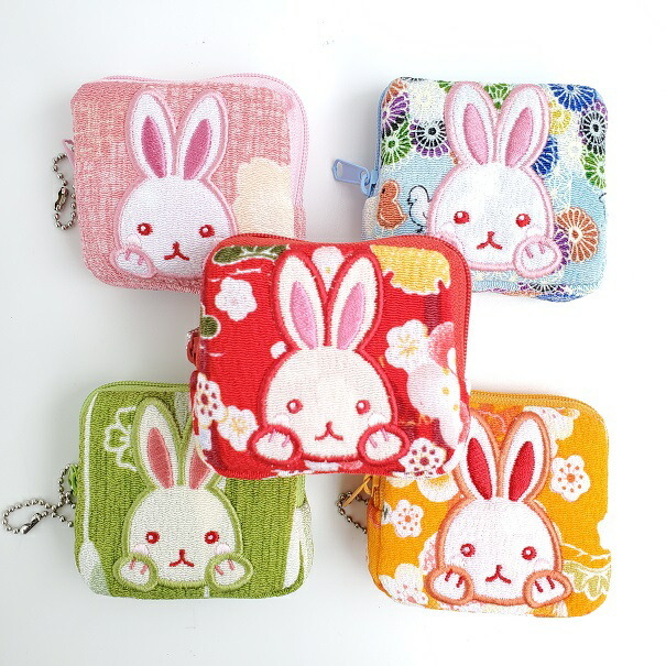 コインケース かわいい うさぎ コインケース 12色 うさぎシリーズ ウサギ 兎 縁起物 小銭入れ 小物入れ お薬入れ イヤフォン入れ ちりめん生地 手作り ハンドメイド 可愛い マチ付き 和柄 ミニポーチ 四角ポーチ スクエア ボールチェーン付 幼稚園 保育園 プレゼント【10点までメール便OK】