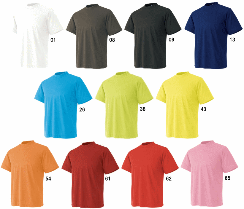 | ●カラー | 01:ホワイト 08:ダークグレー 09:ブラック 13:インディゴネイビー 26:スカイブルー 38:Fグリーン 43:レモンイエロー 54:キャロット 61:ダークレッド 62:レッド 65:ライトピンク |