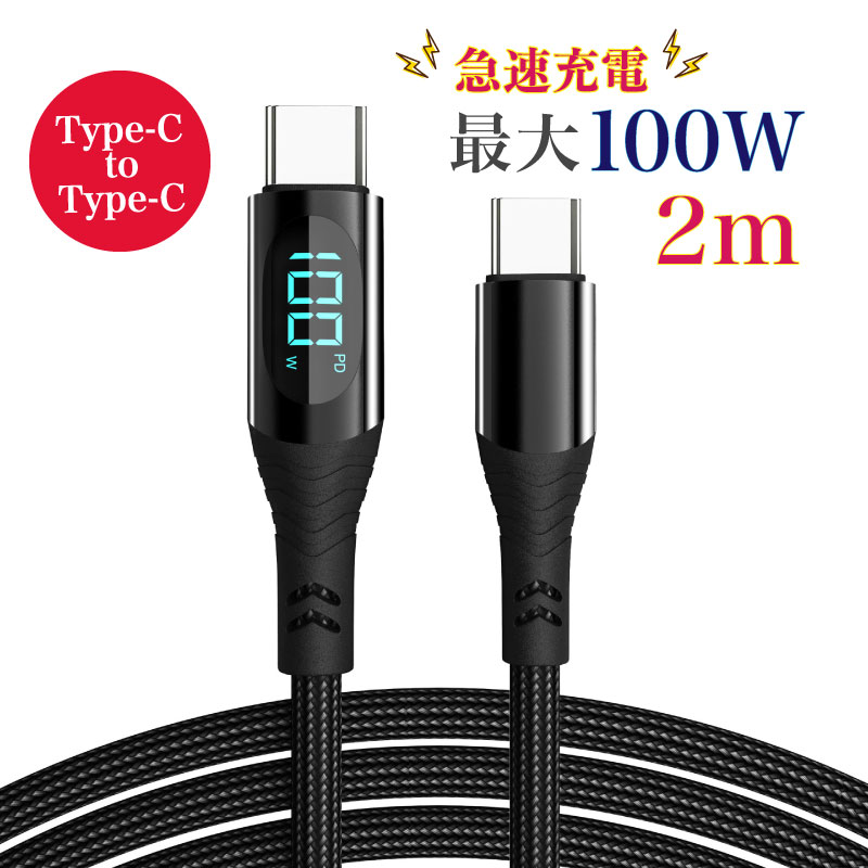 Type-Cケーブル 充電ケーブル 電力表示 2m PD 急速充電 100W 480mbps 長い スマホ Android iOS