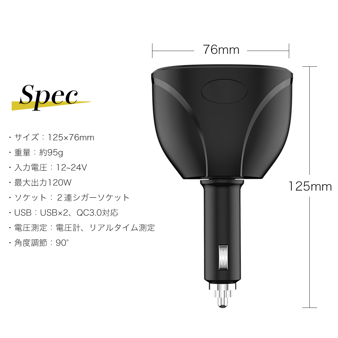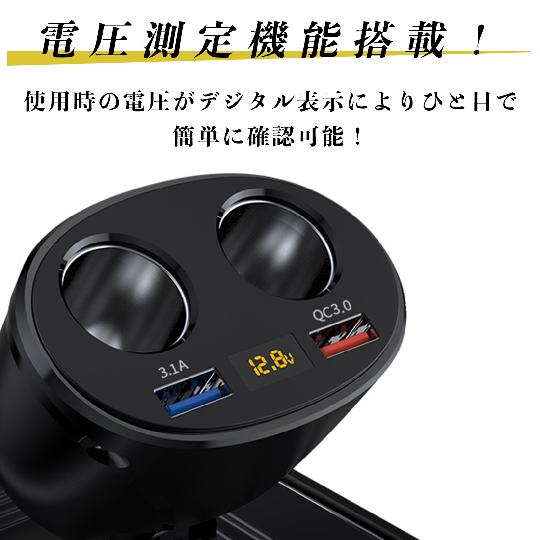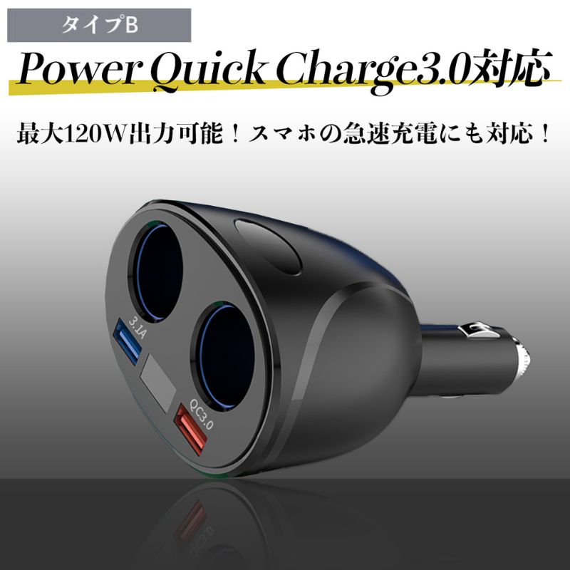 シガーソケット USB 増設 2連 車載充電器 QC3.0 4.8A カーチャージャー 高速 充電 二股 電源 トラック 12V 24V 車用 急速 2ポート 車