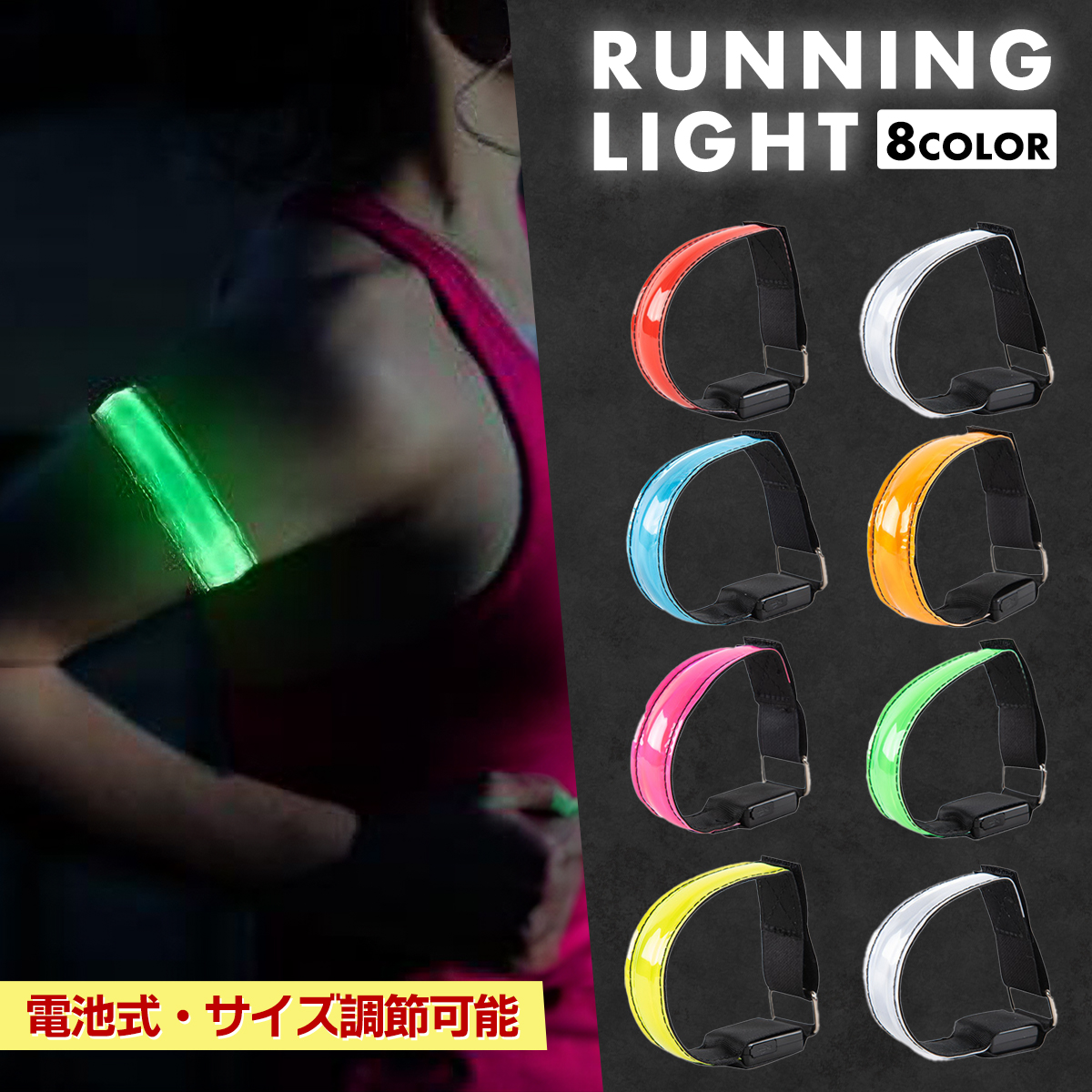 ランニングライト 腕 アームバンド 電池式 LED ランニング 防水 ジョギング ウォーキング 散歩 高輝度 事故防止 運動 反射バンド 自転車 防水 夜間 腕 安全