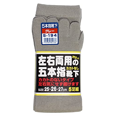 おたふく手袋(Otafuku Glove)関西ファッション連合 5本指靴下カカトなしグレー 5足組 S-194