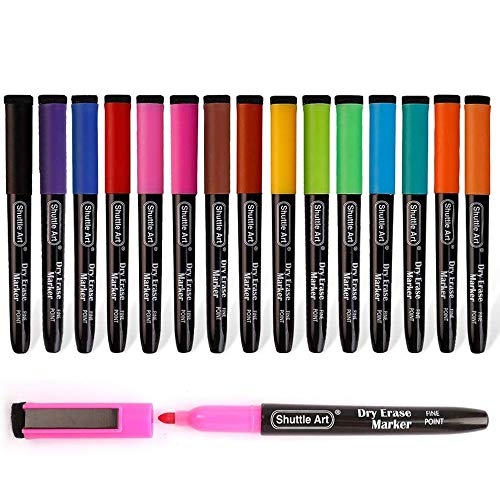 Shuttle Art ホワイトボードマーカー 消せるマーカーペン 15色セット 磁気 マグネット付 イレーサー付 ホワイトボード用 ガラス/プ