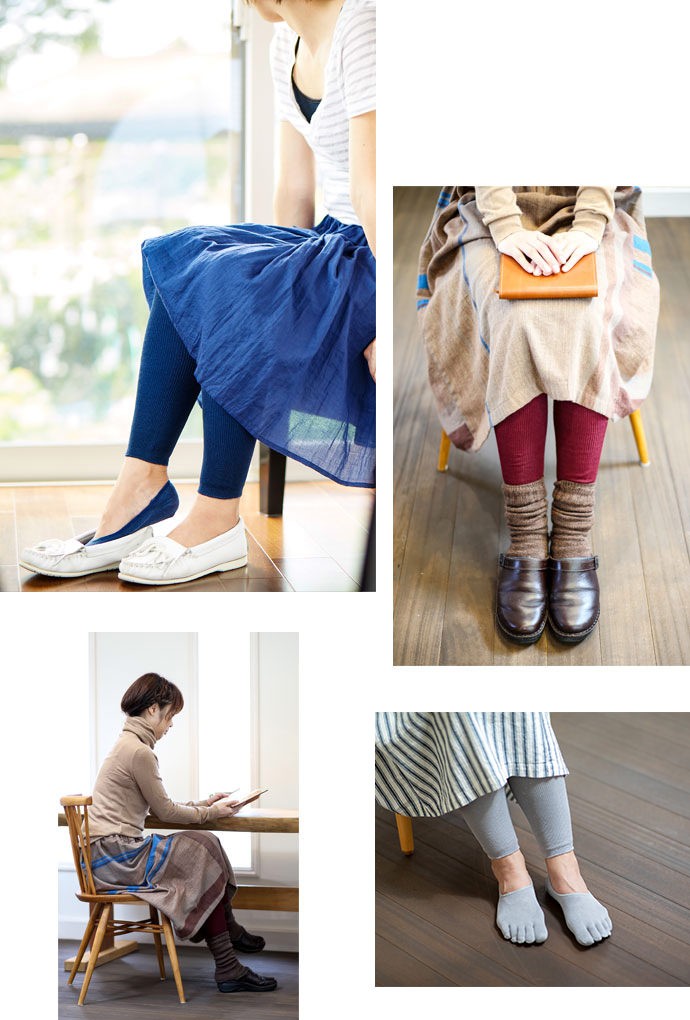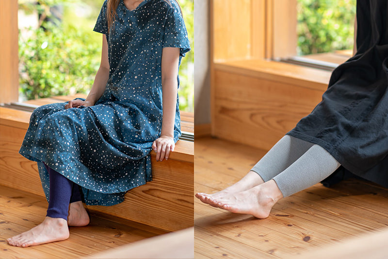 冷えとりにも、足元のおしゃれにも、使い勝手抜群の千代治の定番レギンスです。