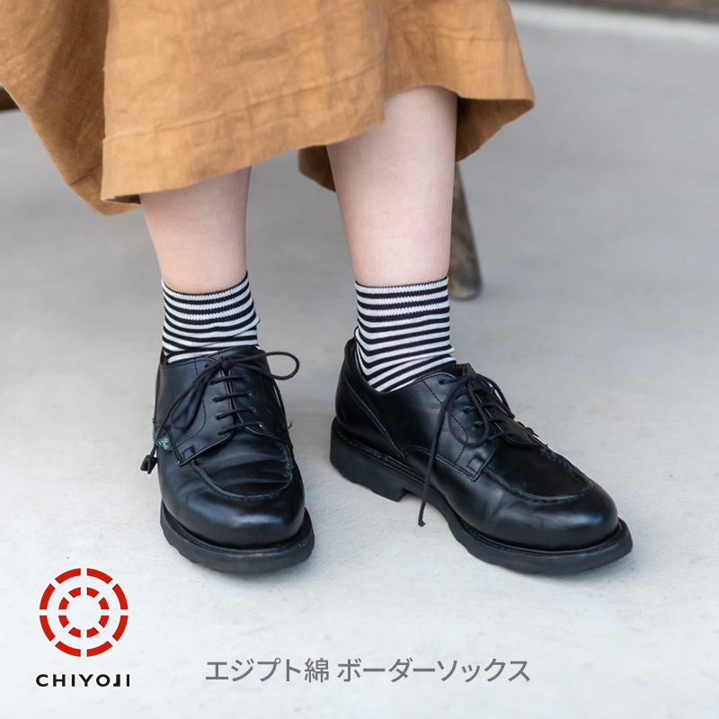 【単品】エジプト綿 細目ボーダーカラーソックス (22-24cm) [25-27cm] 薄手