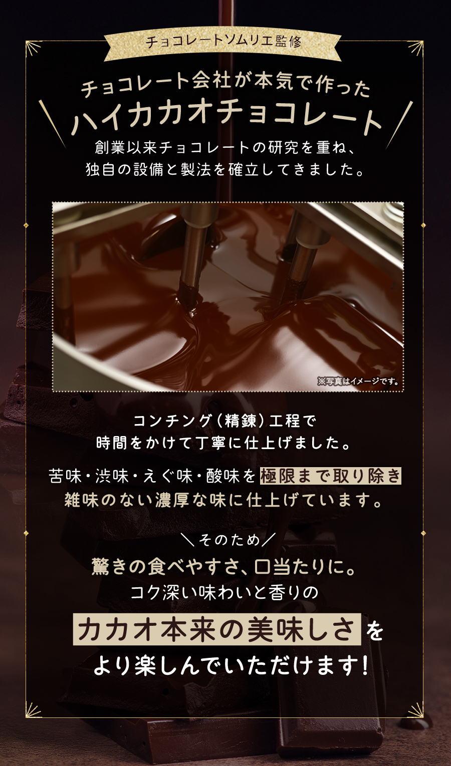 | 原材料名 | A カカオマス(外国製造)、ココアパウダー、砂糖、ココアバター、乳糖/乳化剤(大豆由来)、香料 B カカオマス(外国製造)、ココアパウダー、砂糖、ココアバター/乳化剤、香料 |