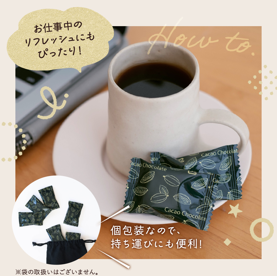 | エネルギー:32kcal たんぱく質:0.7g 脂質:2.4g 炭水化物:2.0g ―糖質:1.5g ―食物繊維:0.5g 食塩相当量:0.00g カカオポリフェノール:124mg この表示値は、目安です。 | |