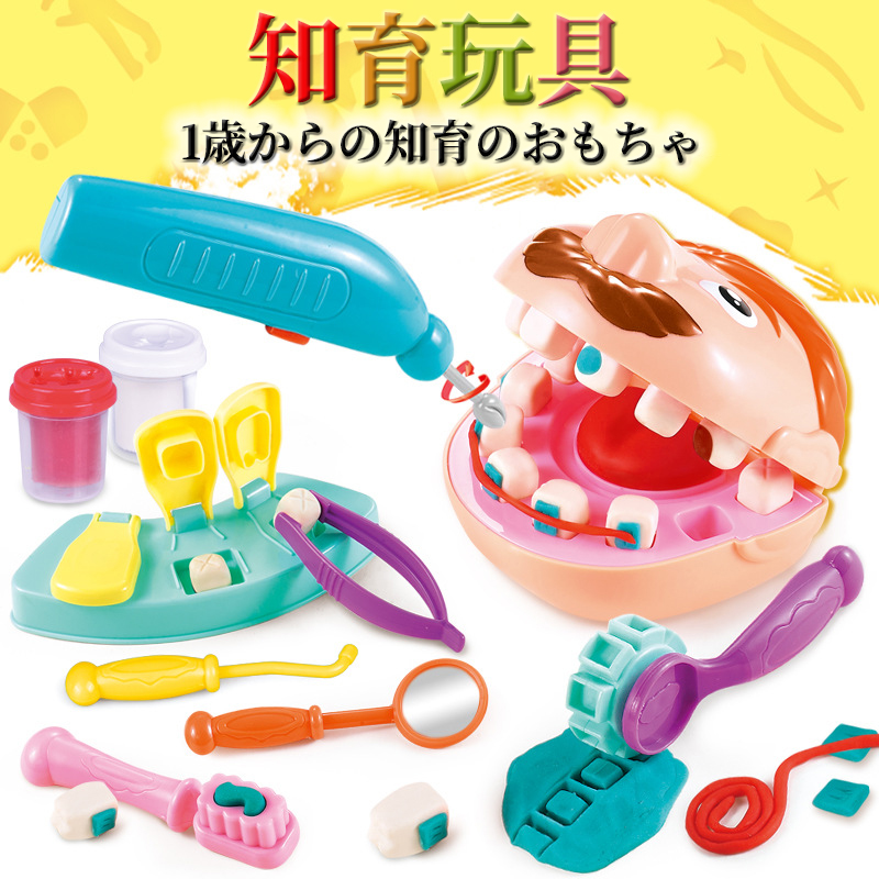 本格的な歯医者さんごっこ:歯医者になりきって、探針を使ったり、ねんどで歯を作ったりすることで、想像力や創造性を役立ちます。汚れた歯や歯並びがキレイになって、楽しさがいっぱいですね!