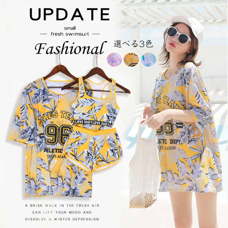 一部即納!水着 高校生 中学生 レディース 3点セットプール ラッシュガード 体型カバー 大きいサイズ 母 おしゃれ セパレート リゾート ママ水着 温泉