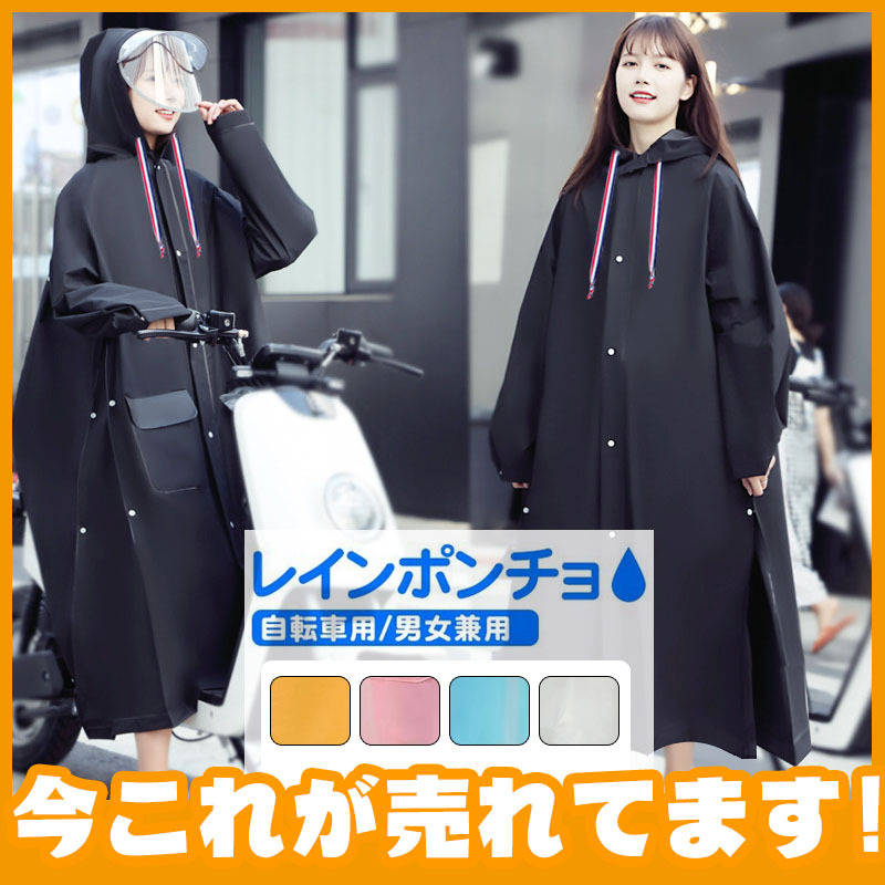 一部即納!レインコート レディース レインウェア クリアバイザー 自転車 ポンチョ 女の子 おしゃれ 長め 防水 バイクリュック対応 通勤 通学用 洗える