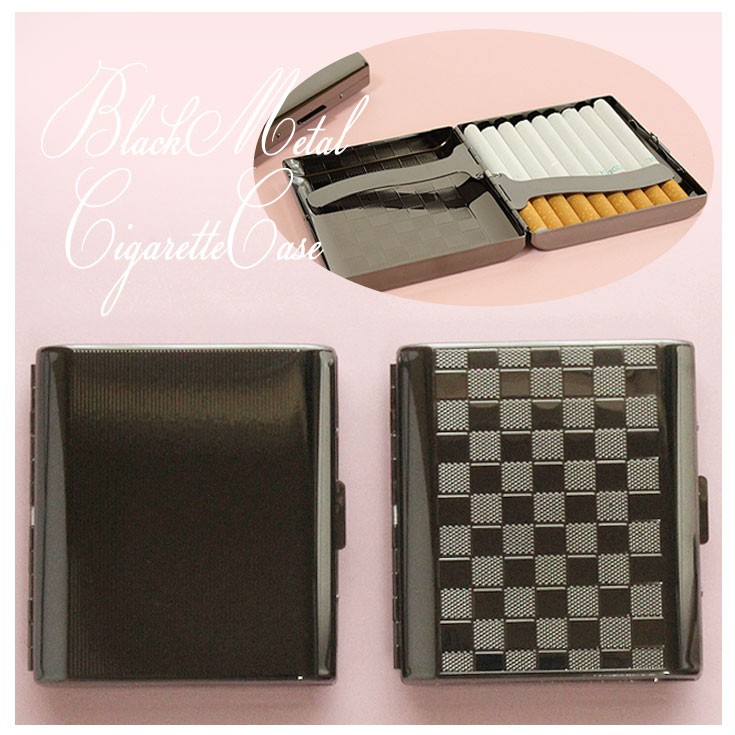 ブロックチェックとストライプの模様がカジュアルなメタル製のシガレットケースです♪