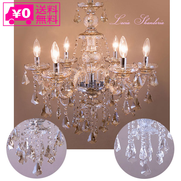 送料無料 秋月貿易 クリスタル シャンデリア LACIA 6灯 ラシア LACIA P6D クリスタル E12口径 組み立て 照明