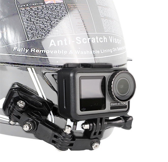 バイクのヘルメットにGoProやDJI Osmo Action等のアクションカメラを取り付けるアクセサリーセット。