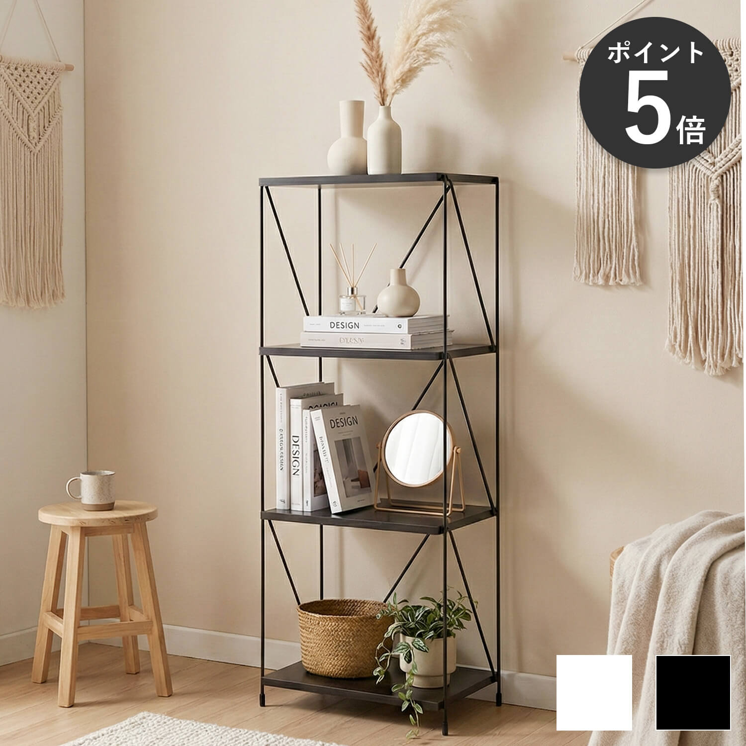 キーワード:リビング / 子供部屋 / 寝室 / 棚板 / 木目調 / 差し込むだけ / A4 / ラック4段 / 幅42cm / 収納棚 / 工具不要 / 組立簡単 / スタイリッシュ / シンプル / モダン / ホワイトウォッシュ / ブラック / 黒 / 白