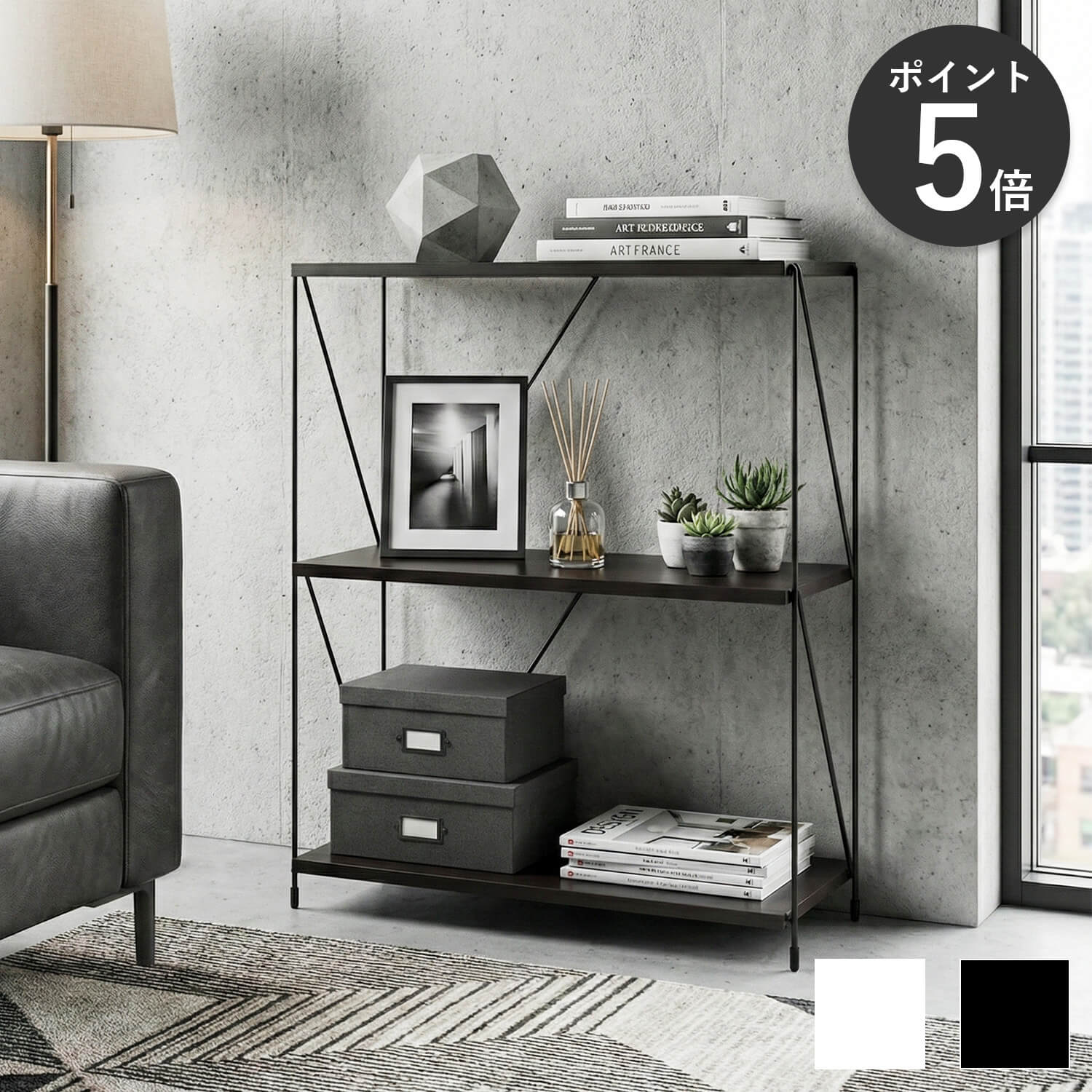 背面のないオープン設計で圧迫感がなく、見せる収納としても楽しめます。