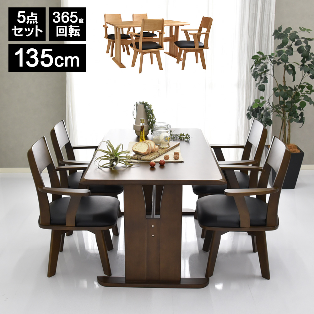 ダイニングテーブルセット 4人 4人掛け 4人用 135cm 5点セット 回転いす 北欧 おしゃれ テーブルセット ダイニングチェア 回転 肘付き 木製 t字脚 ジャワ