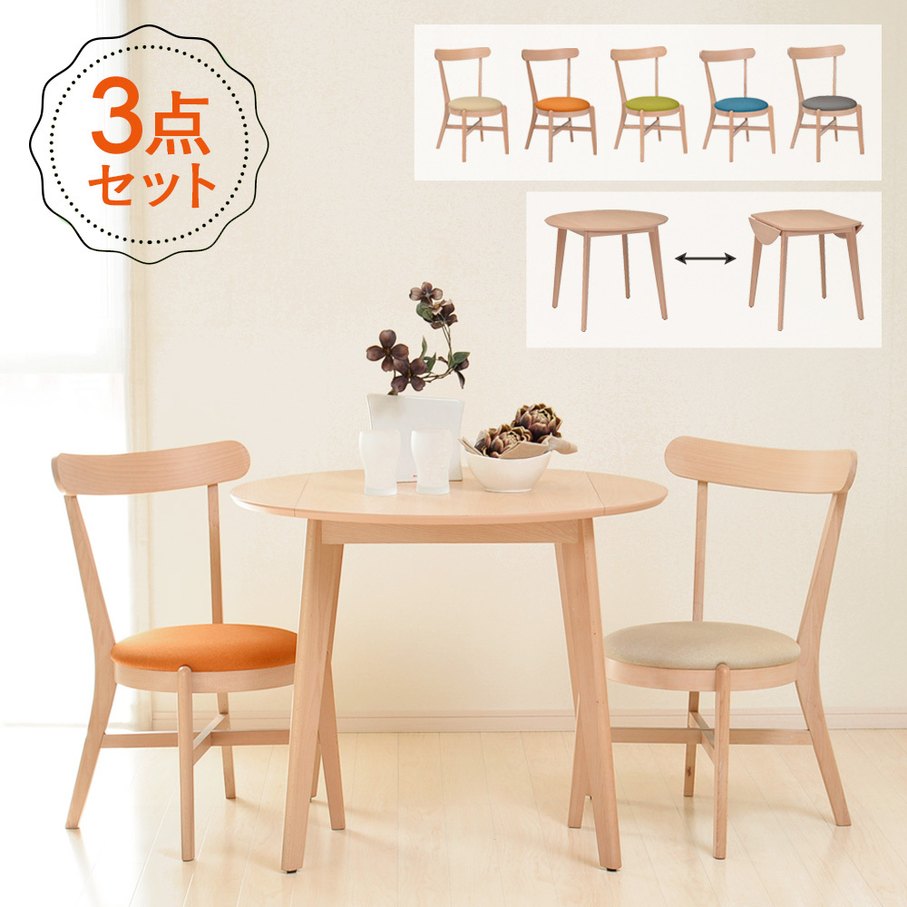 ダイニングテーブルセット 3点 2人用 直径90cm 円形 円卓 木製 食卓テーブル ビーチ 無垢 折りたたみ 北欧 おしゃれ シンプル 新生活 マリン