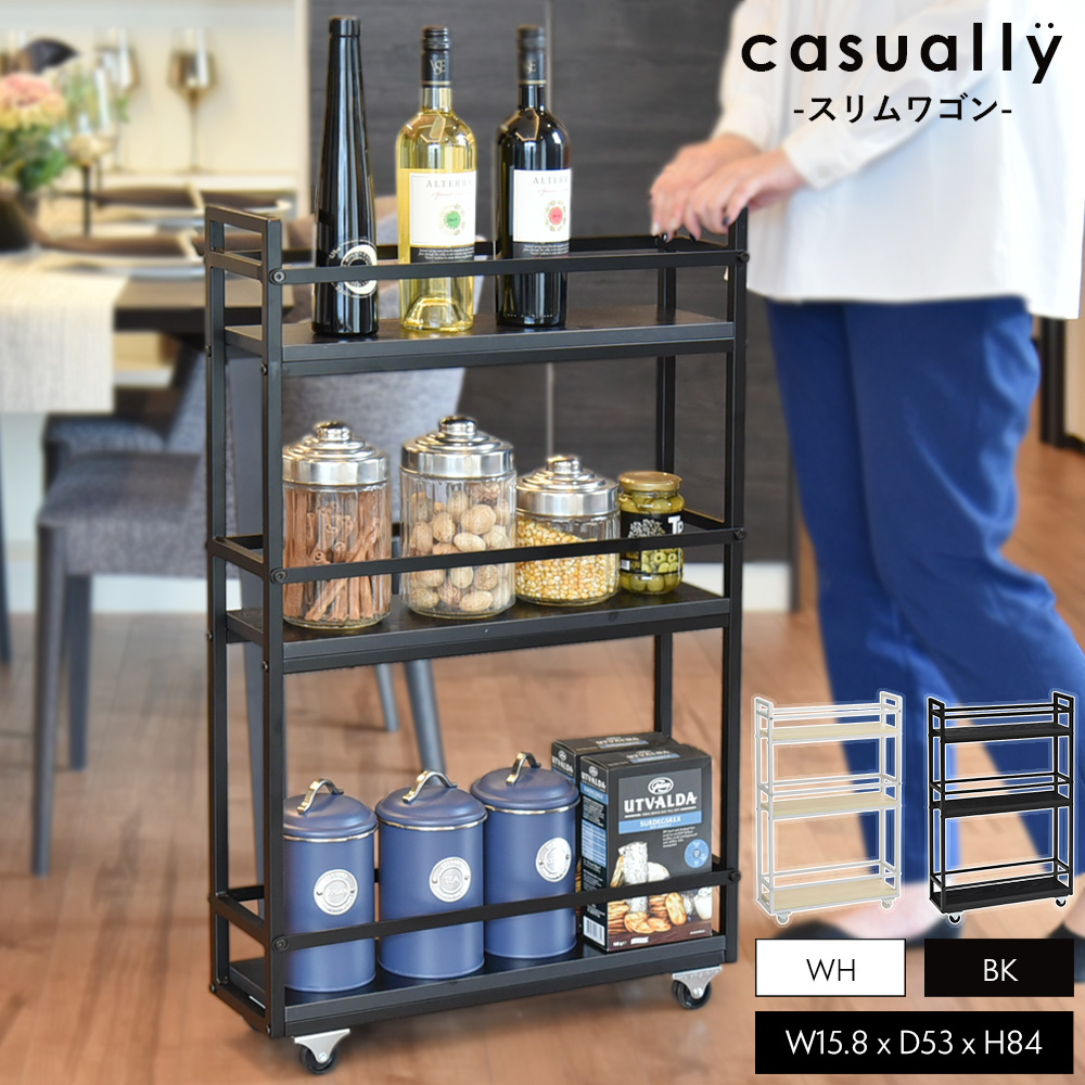 POINT:2Lペットボトルが入る収納が欲しい!ペットボトルや高さのある調味料が収納できるように高さにこだわった3段のスリムワゴンは隙間収納にぴったり。