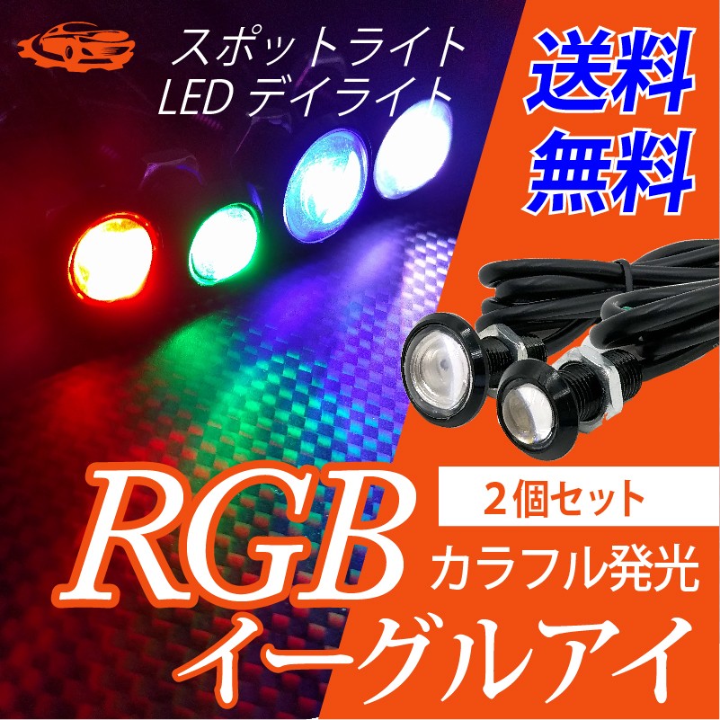 RGB LED スポットライト イーグルアイ 超薄型 サイズ選択 23mm 18mm デイライト 赤 緑 青 白 1.5W ボルト型 防水 2個セット 送料無料