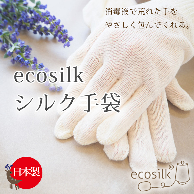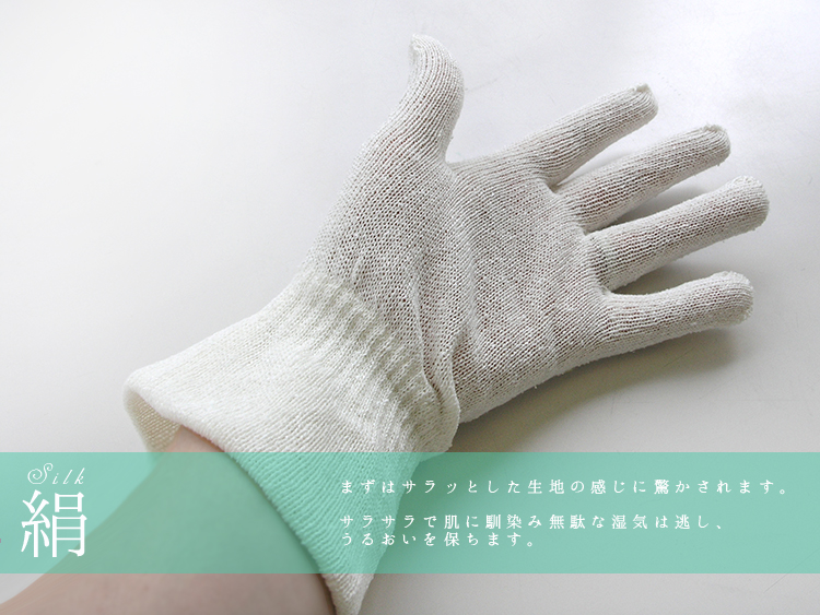 エコシルク手袋 絹の手袋 日本製 ハンドケア ナイト用 絹紬糸 手指の保護 手荒れ防止 お休み前のハンドクリームを塗った後にも