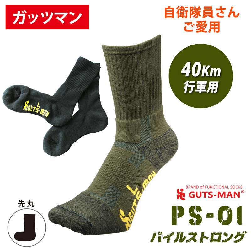 ガッツマン 靴下 PS-01 ストロングパイルソックス 40km行軍用 自衛隊靴下 行軍用 (無在庫転売店舗にご注意下さい)左右設計 足の保護 疲労軽減 アウトドア