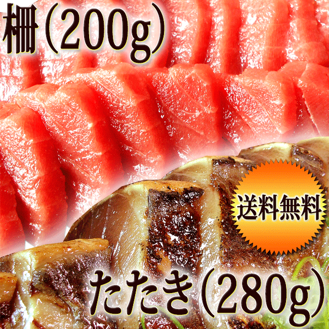 【内容量】本まぐろ赤身200g(柵)、鰹のタタキ280g