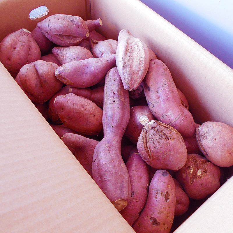 蜜芋は「焼芋限定」と申し上げても過言ではないでしょう。ふかしてしまうと、そのよさが全く発揮されません。 じっくり、じ〜っくり、できるだけ長い時間(できれば「90分」くらい)をかけて焼いてください。 焼き芋器がある場合は弱火でじっくりと、専用の器具がない場合は、アルミホイルにくるみオーブンで焼いてください。 はやる心をおさえつつお芋を割ると、「あめ色の果肉」がもっちり輝き、甘〜い湯気をたちのぼらせて、あなたを迎えてくれることでしょう。 ひとくちたべるとその「甘さ」にびっくり!「蜜いも」の名前は伊達ではありませんよ! ぜひおためしください (*^o^*)/ |