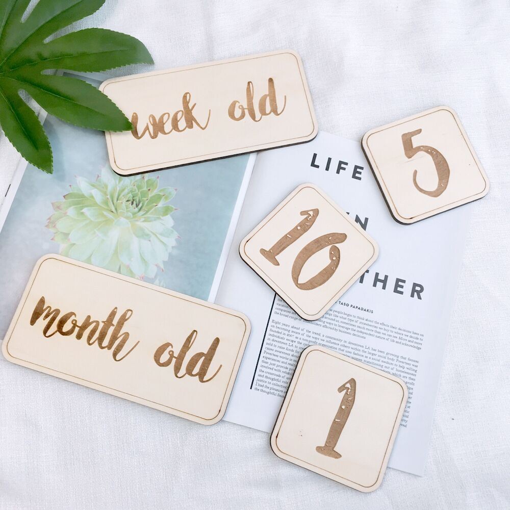 ウッド製 記念日 赤ちゃんの月齢年齢撮影用カード/ベビーマンスリーカード フォト/新生児写真撮影用アクセサリー小物 背景 100days成長記録 出産お祝い ギフト