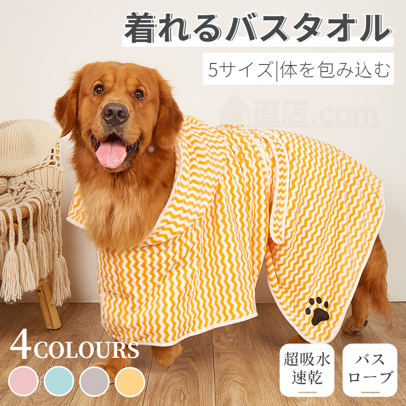 バスローブを着せてあげることで、濡れた毛の水分をすばやく吸収する事ができ防寒の効果もあります。