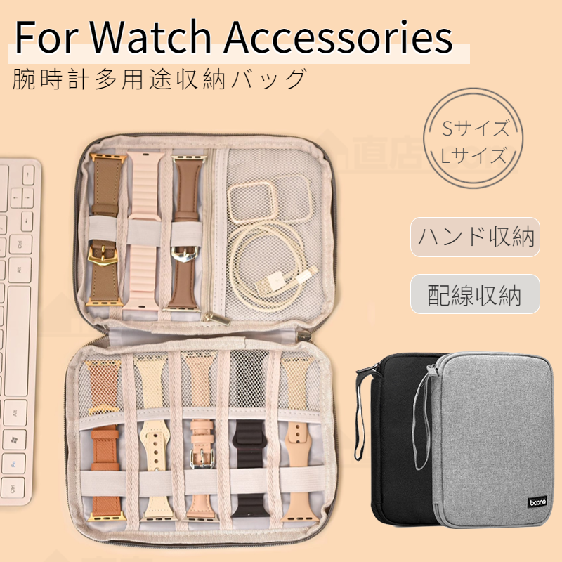 時計ストラップ、配線アクセサリーなど細かい小物をバラバラにせず綺麗に整理整頓できます。
