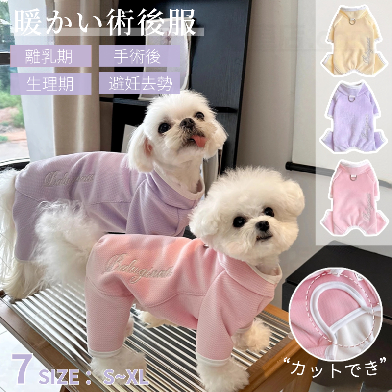 生理期、去勢術後回復や皮膚病、乳腺腫瘍、傷舐め防止、引っ掻き防止などのためによく使われている術後服。
