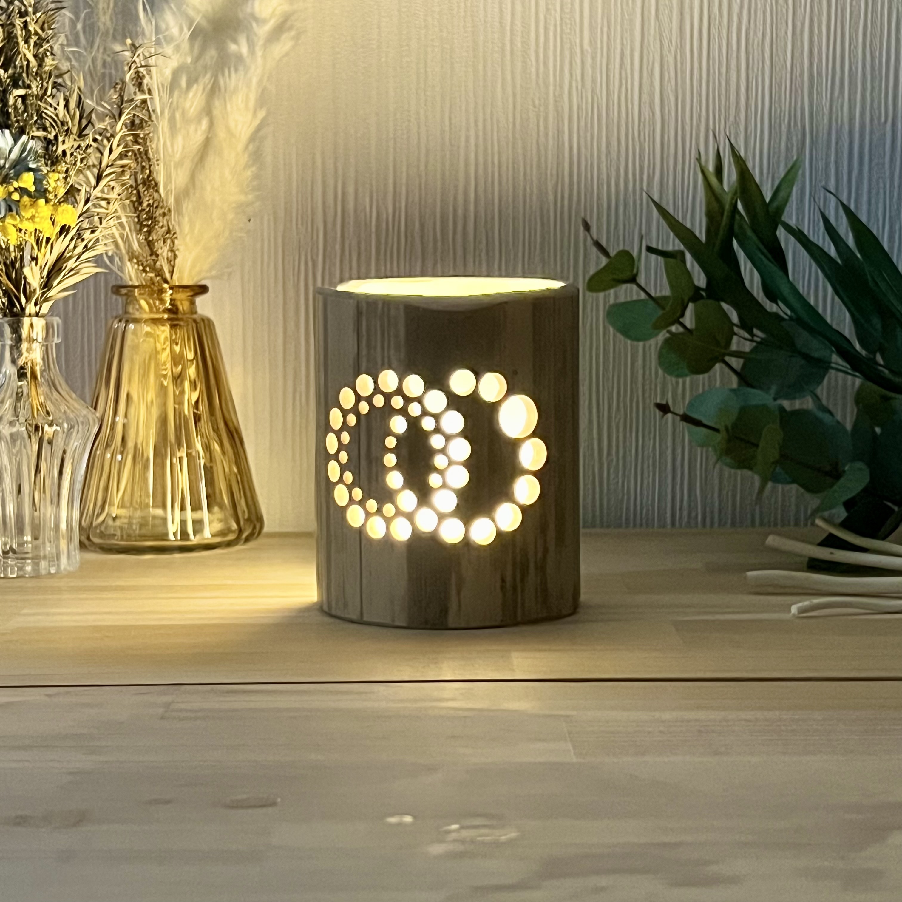 竹ランプの高さ・柄の複雑さが増すほど、光量が強い方がランプを灯した時に柄がハッキリと見えます。