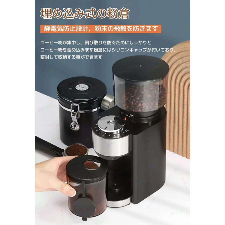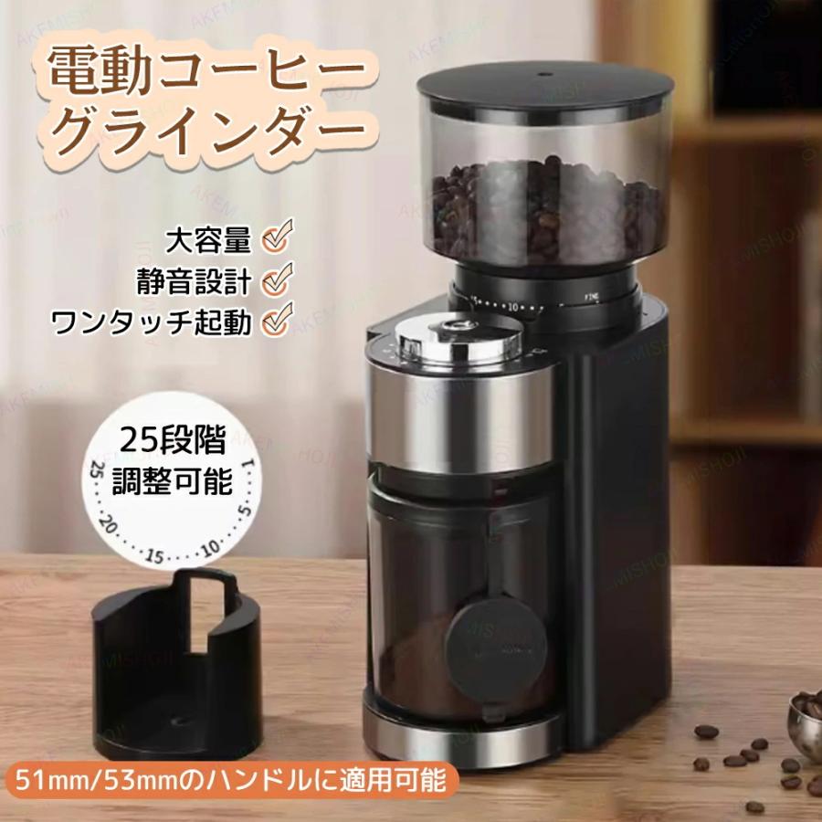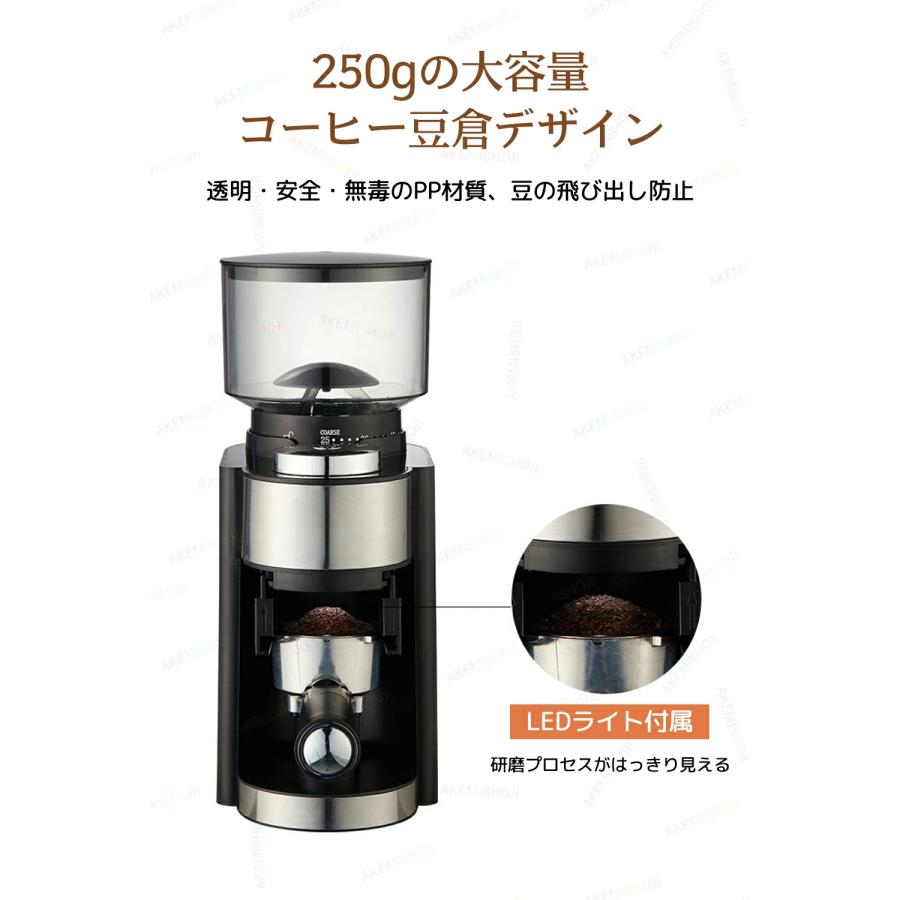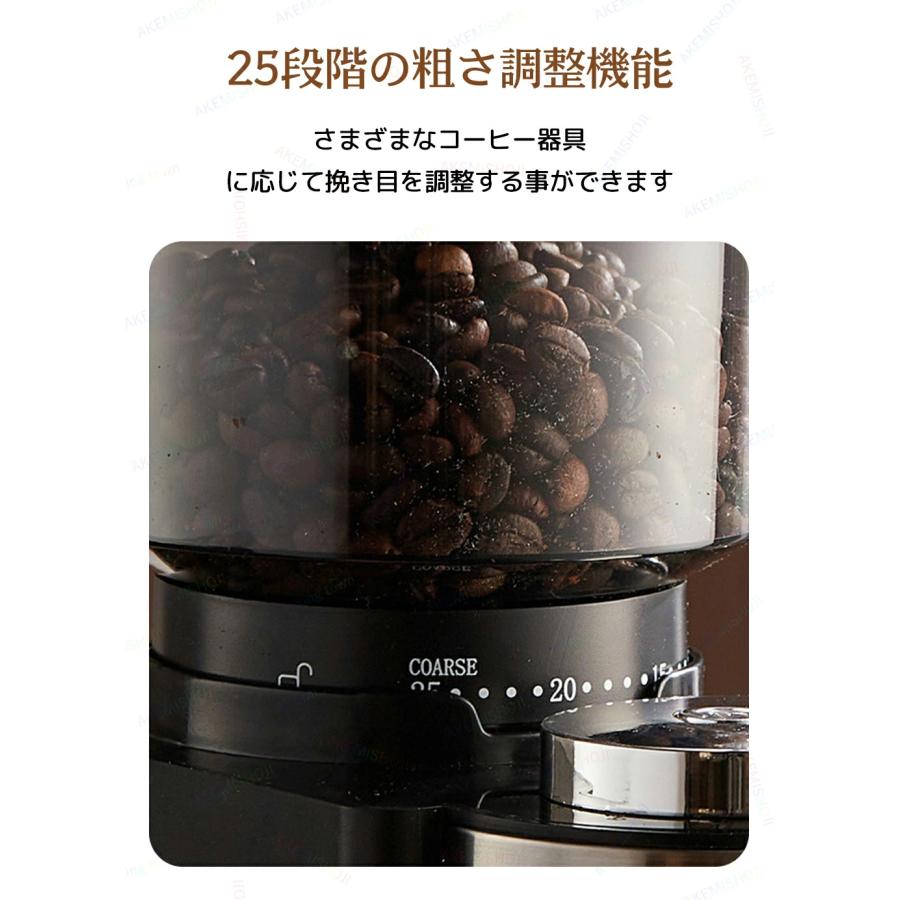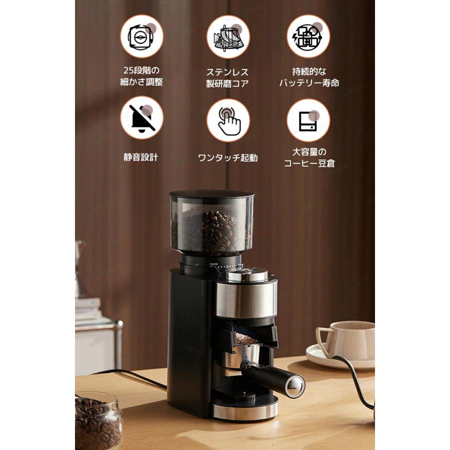コーヒミル 電動 コンパクト コニカルカッター 豆挽き 極細~粗挽き 粒度25段階設定 250g大容量 粉が飛び散らない 挽きムラ防止 コーヒー粉砕機 家庭用 業務用