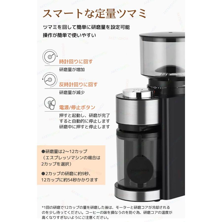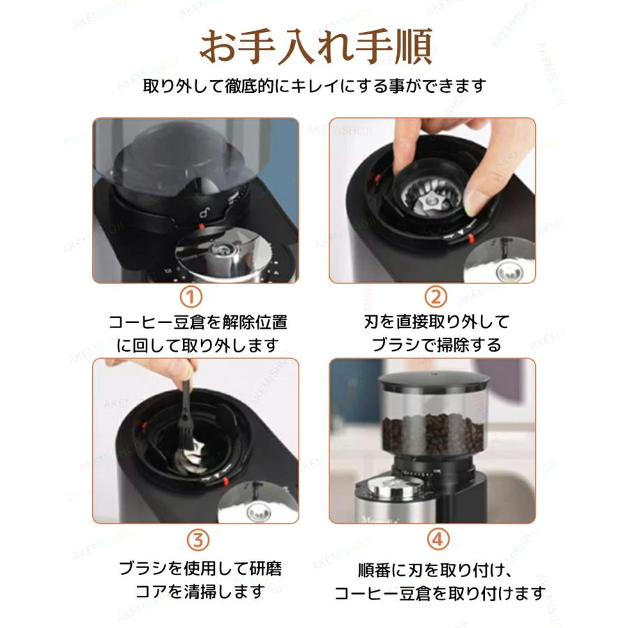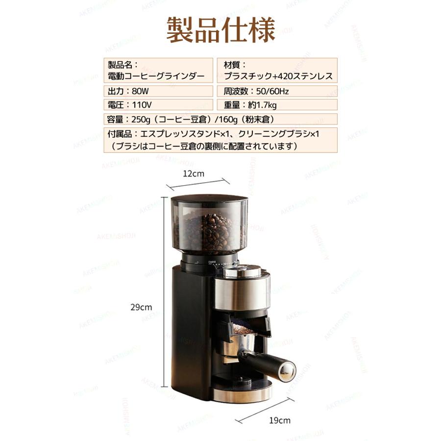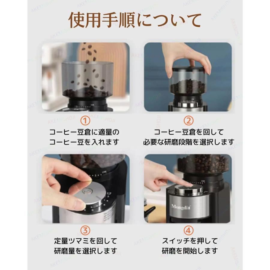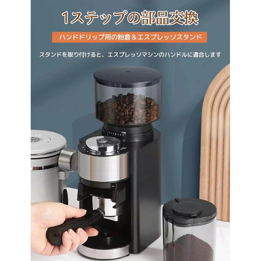 コーヒミル 電動 コンパクト コニカルカッター 豆挽き 極細~粗挽き 粒度25段階設定 250g大容量 粉が飛び散らない 挽きムラ防止 コーヒー粉砕機 家庭用 業務用