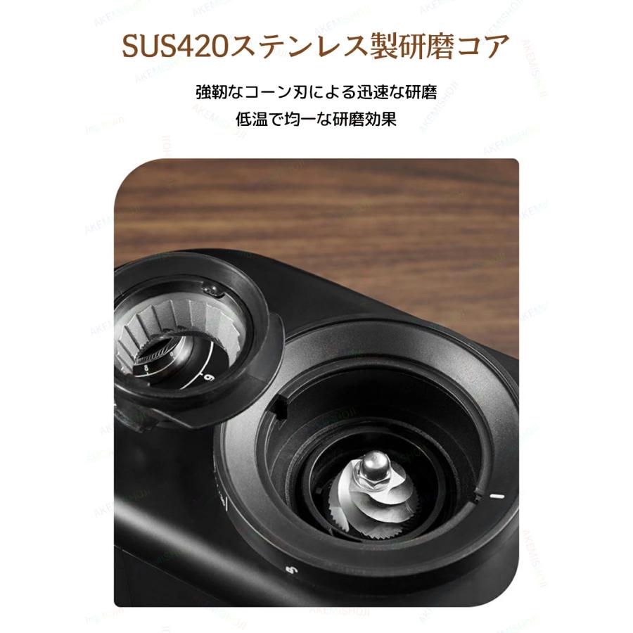 ★【高品質素材】食品グレードの420ステンレス鋼円錐形砥石と高硬度刃先グレードのステンレス鋼を採用しています。研削は常に正確で、摩擦指数を低減し、コーヒー豆の元の味と香りを最大限に保持します。パワフルなグラインダーが豆を均一に挽き、粉末が一貫して同じ質感であり、コーヒーの抽出効率も向上します。高品質な素材と堅牢な構造により、耐久性と信頼性に優れた、長く愛用し、毎日のコーヒータイムを満喫できます。コンパクトなサイズと洗練されたデザインは、キッチンやオフィスのスペースを取らずに美味しいコーヒーを楽します。