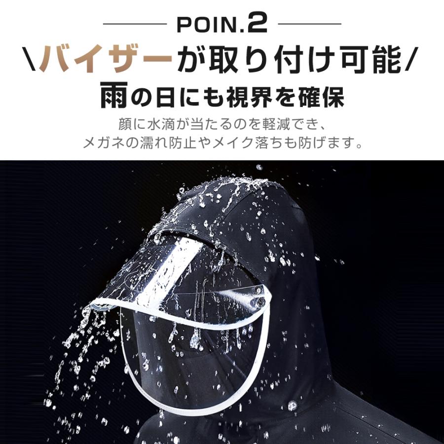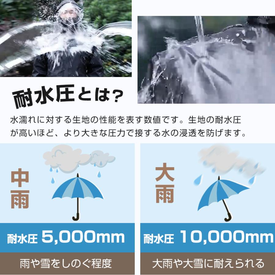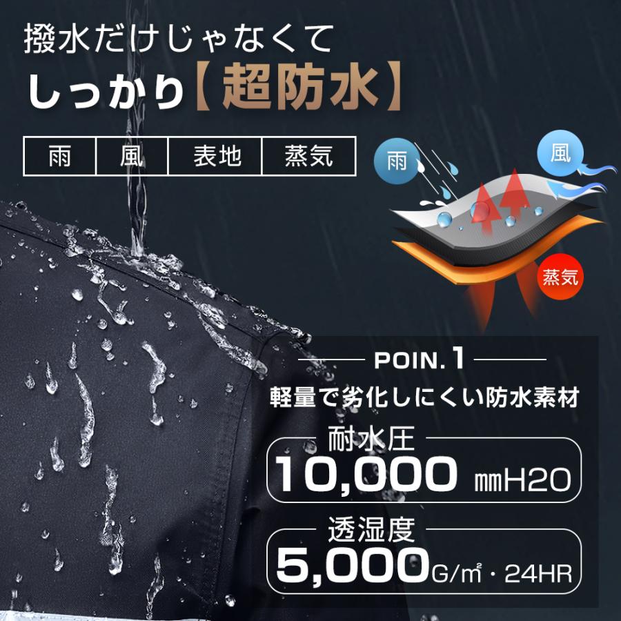 耐久性に優れたEVAエコ素材を採用し、耐水圧10,000mm、防水力高め、丈夫で破れにくいレインウェアです。多重撥水加工を施され、水が生地の中に染み込むことなく弾けます。ファスナー+ボタンの二重設計により、ファスナーを閉じてボタンを留めることで雨水や風の侵入を防げ、大雨でも安心なレインコートです。