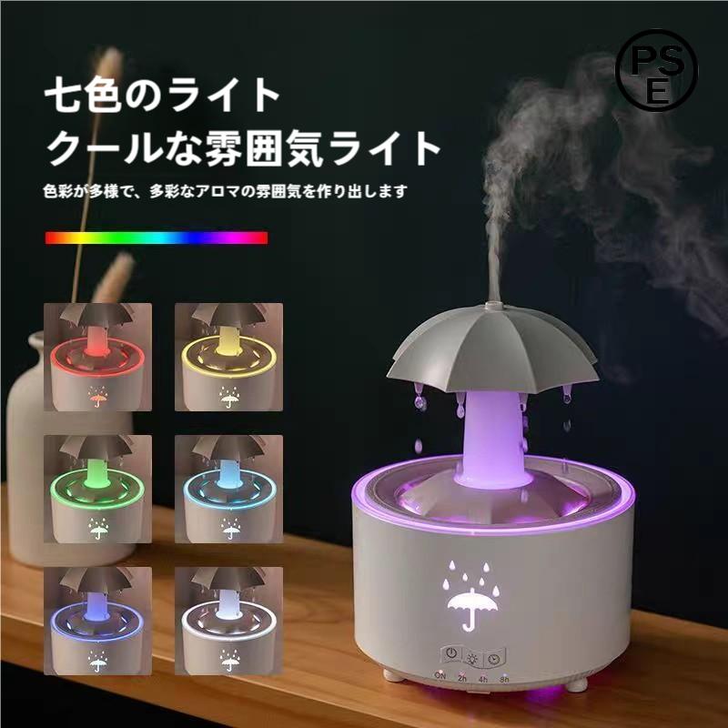 2025新登場レイン型卓上加湿器7色のライト付きレインドロップナイトライトリモコン付き超音波上部給水株式会社錦電源コード式傘滝加湿器乾燥/花粉症対策加湿器
