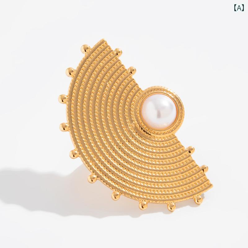 指輪 レディース 女性用 欧米風 存在感 アシンメトリー 合金製 フェザー 羽 幾何学 パール 個性的 普段使い パーティーシーン アク