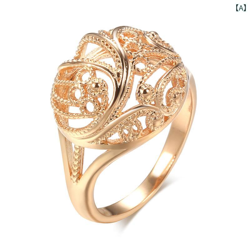 指輪 レディース 銅 真金電気メッキ加工 半球 透かし彫り 花柄 彫刻 ローズゴールド リング ヴィンテージ風 レトロ 上品 カジュアル フ