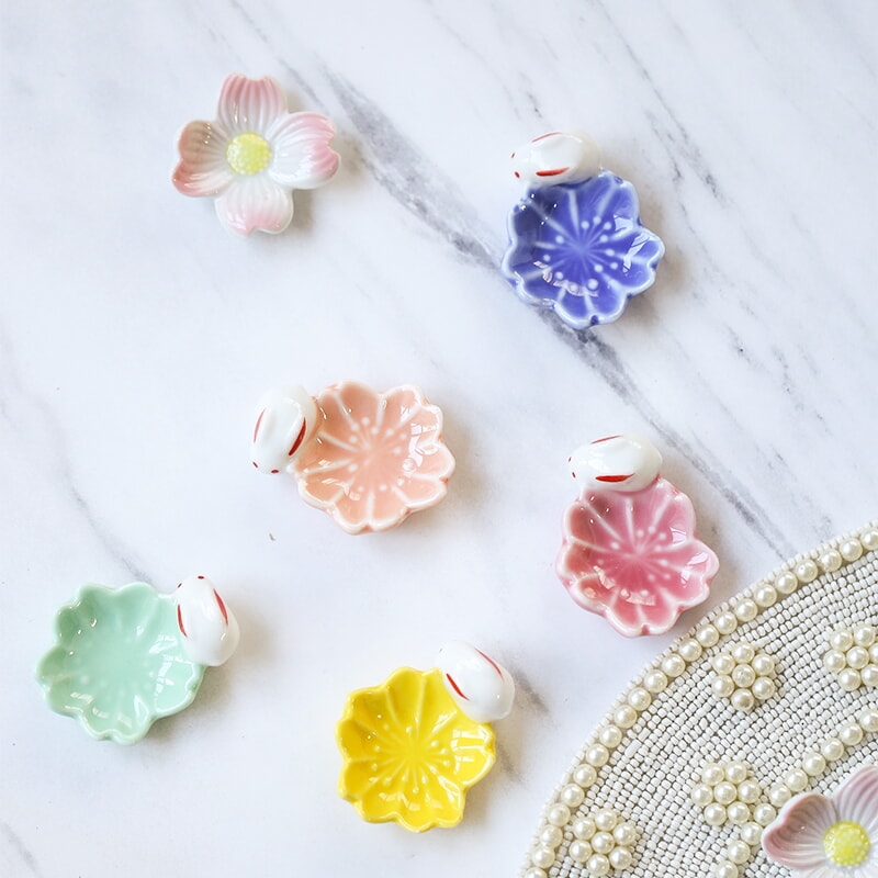 和の食卓装飾置物陶磁器の花小白ウサギ箸受け四照花署置桜ウサギ箸棚